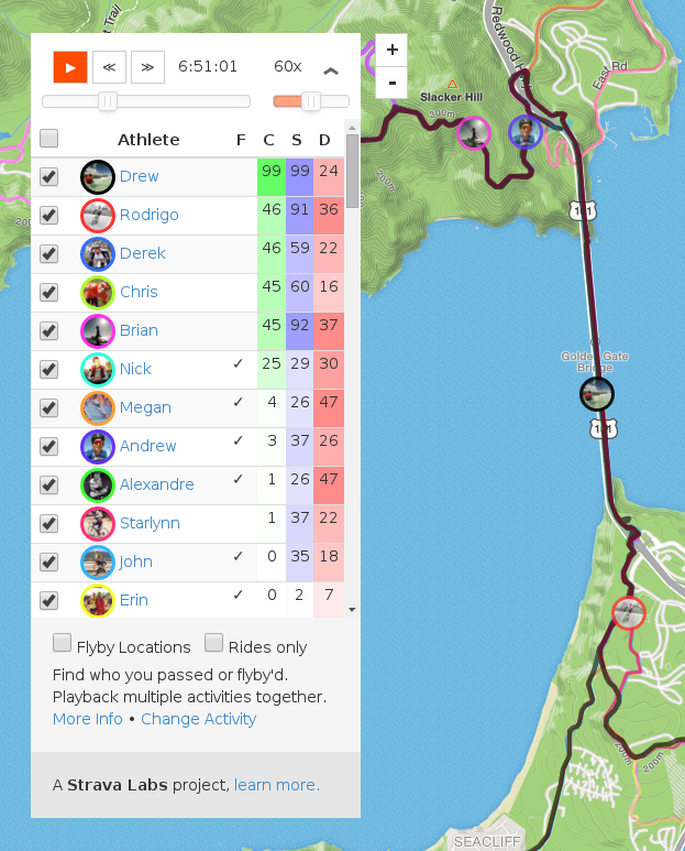 | Flyby | A (✓) means that this activity was a flyby with the primary activity. This means that the activity was within 50 meters of you at some point, and did not ride with you for an extended period of time (has a low correlation). |